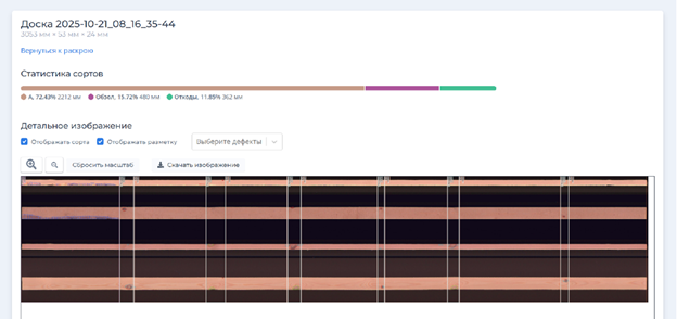 - полную обратимость подключения и значительное снижение рисков в период опытной эксплуатации — в любой момент можно вернуться к ручному режиму работы, чтобы выполнить вручную обработку пиломатериалов, породы или пороки которых пока не поддерживаются сканером. Это, в свою очередь, позволяет постепенно адаптировать систему под разные породы древесины без остановки производства.