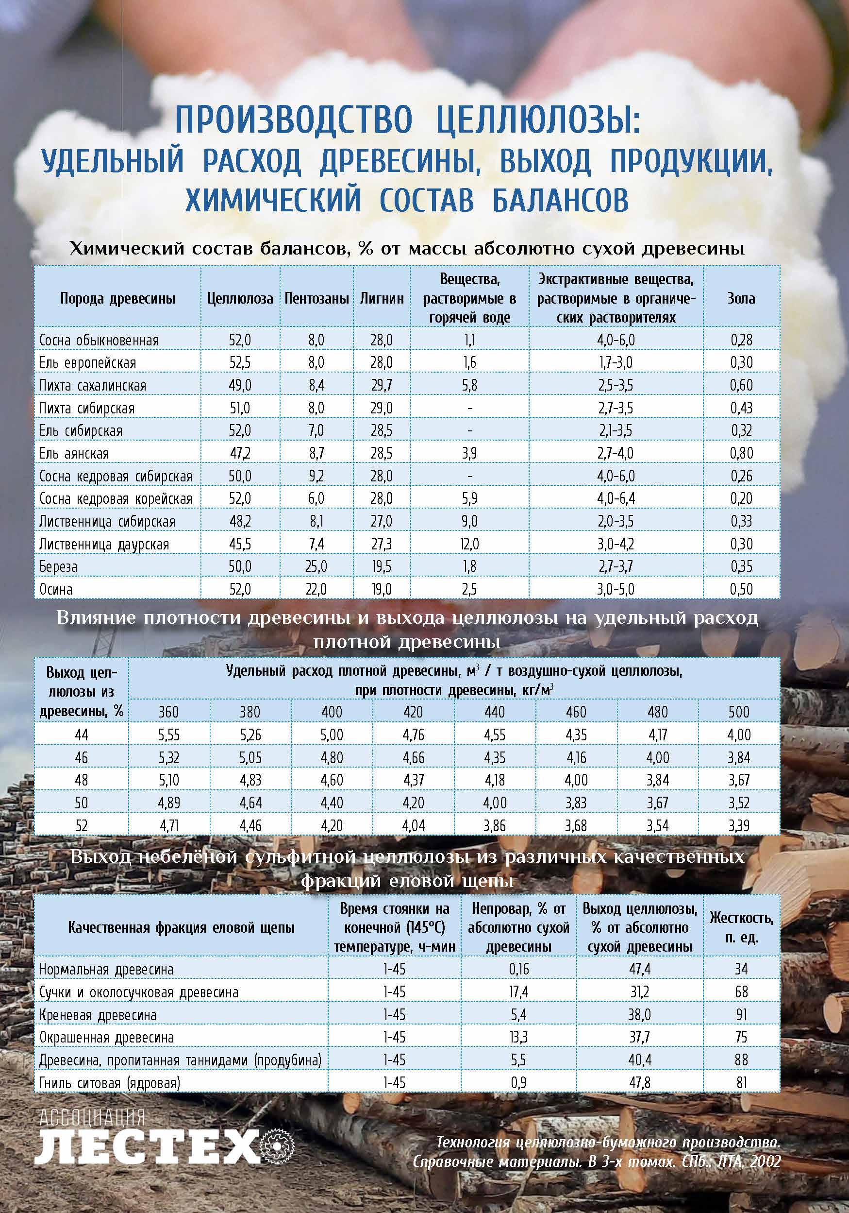 Производство целлюлозы: удельный расход древесины , выход продукции, химический состав балансов