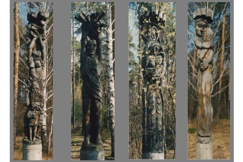 Комплекс «Освобождение человека»состоит из 19 деревянных скульптур, созданных по эскизам Валерия Гаврилова - представителя мистической, «сюрреалистической» линии свердловского неофициального искусства 1970-х-1980-х гг.