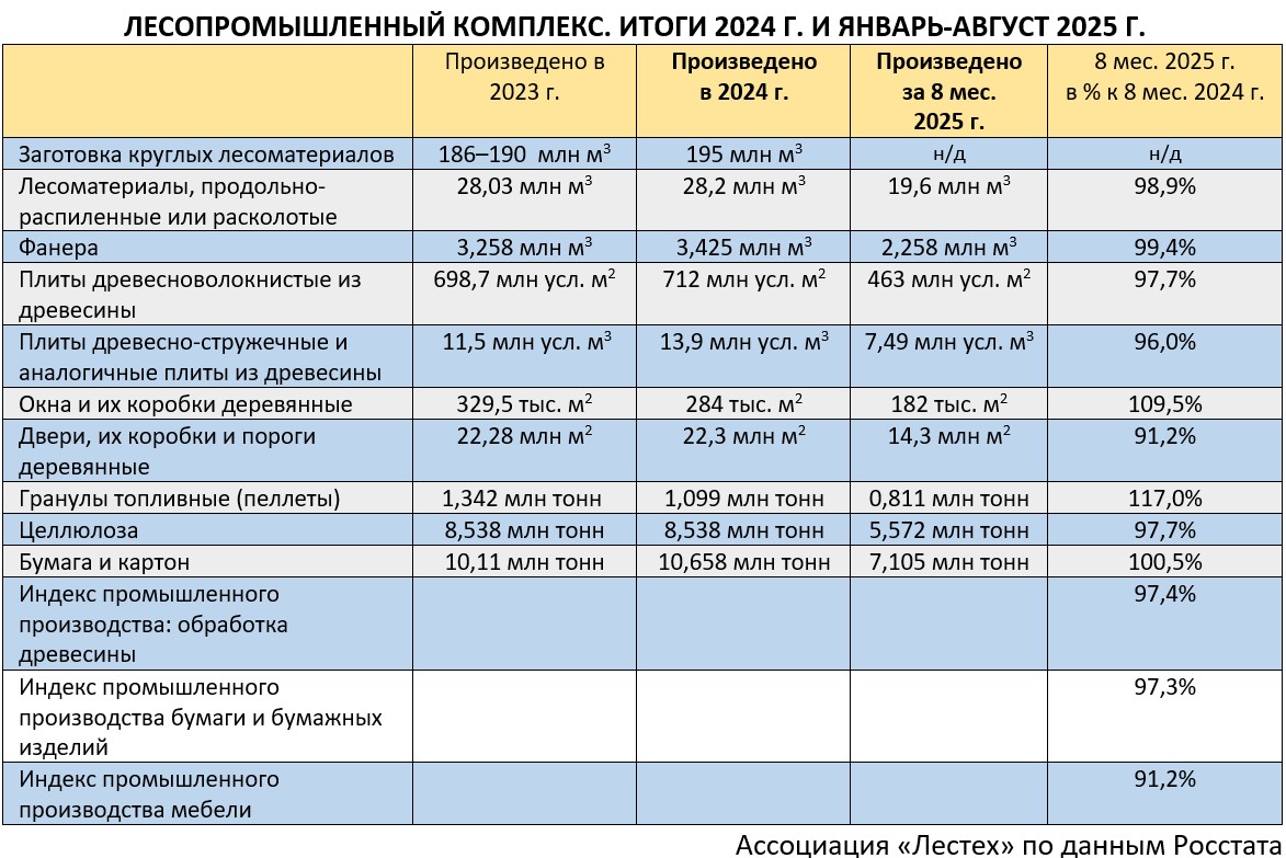Росстат. Официальная статистика ЛПК. Январь-август 2025 г.