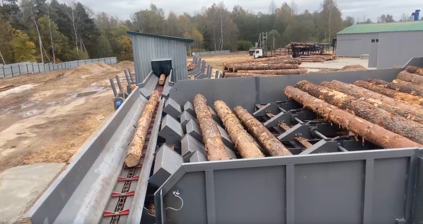 Распределение бревен по диаметрам осуществляется в 12 карманов.