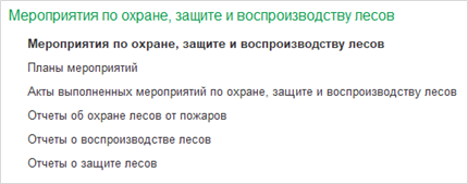 - анализ истории статусов мероприятий по охране, защите и воспроизводству лесов;