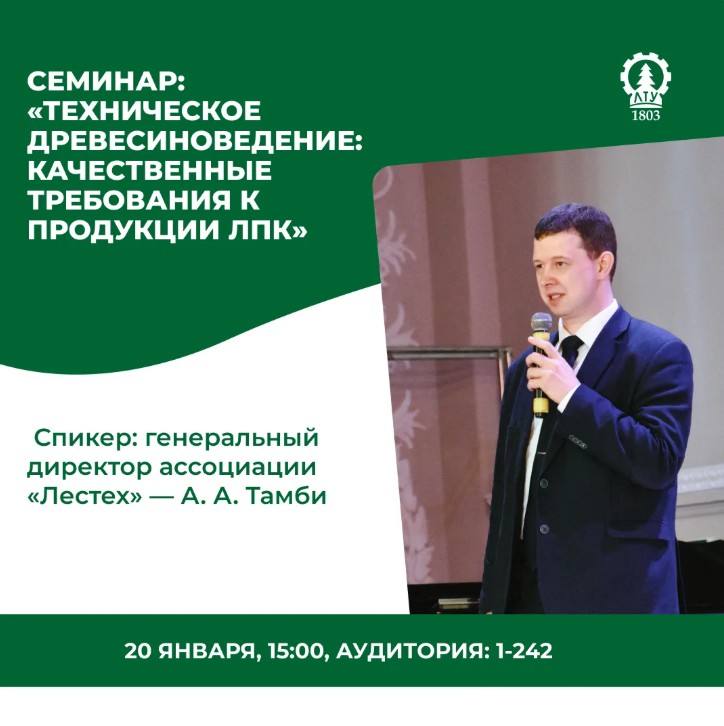 20 января в 15–00 в главном корпусе СПбГЛТУ состоится открытый научно-практический семинар «Техническое древесиноведение. Качественные требования к продукции ЛПК».