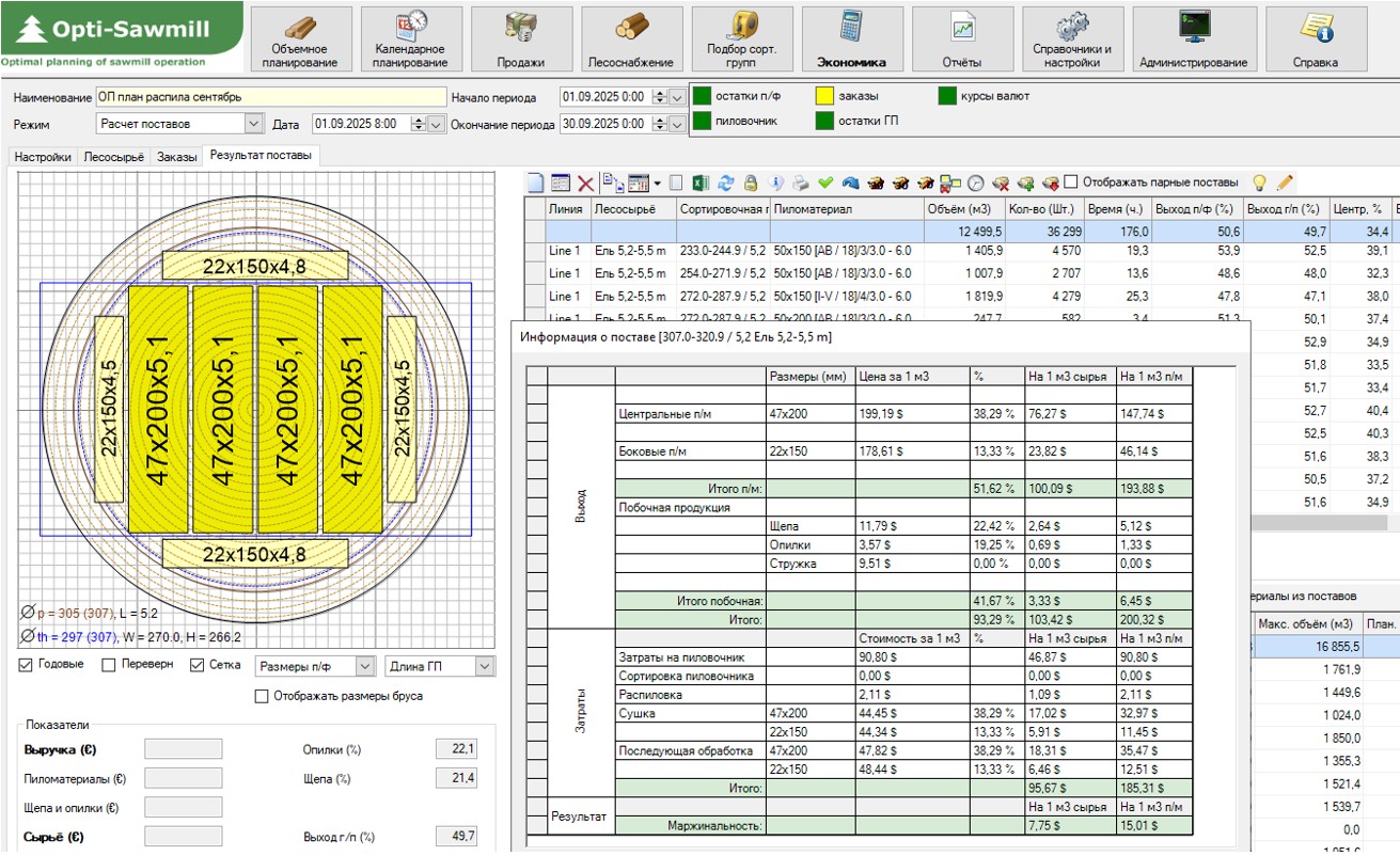 На деревообрабатывающем предприятии в Республике Беларусь передан в промышленную эксплуатацию модуль «Экономика» системы Opti-Sawmill, который позволяет при расчете плана учитывать не только затраты на пиловочник, но и производственные издержки по переделам – лесопиление, сушка и сухая сортировка пиломатериалов. Подробный учёт производственных издержек позволяет точнее выявлять продукты, которые менее выгодны или даже приносят убыток.
