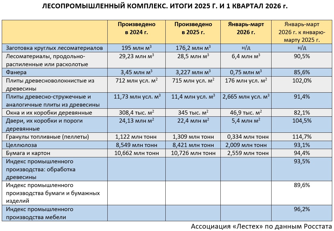 Росстат. Официальная статистика. Лесопромышленный комплекс. 1 кв. 2026 г.